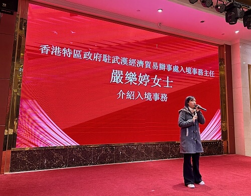 署理驻武汉办主任白梅霞在聚会开始时表示,驻武汉办与鄂港联一直以来紧密联系、合作无间,透过举办不同类型的活动,为香港同学提供适时的支援与服务。她希望同学们尽情参与此次聚会,并鼓励大家来年学业取得进步。入境事务主任严乐婷亦为同学们介绍驻武汉办入境事务组工作,帮助在鄂港生更好地了解相关服务及资讯。