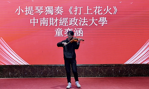 在轻松愉快的游戏环节中,同学们积极参与“古诗接龙”和“你画我猜”等趣味游戏,现场笑声不断,气氛热烈。而在才艺表演环节,有同学一展歌喉,为大家带来悦耳的歌声;也有同学表演活力十足的舞蹈,跃动舞台;还有同学演奏小提琴,以悠扬琴声为大家奏出动听的乐曲。最后,全体在鄂港生一起大合唱,将现场气氛推至高峰。大家用歌声表达对彼此的祝福和对未来的美好憧憬。同学们纷纷表示,这次聚会活动内容丰富多样,大家建立了亲厚温暖的情谊,共同创造出充满爱和关怀的氛围,并表示日后也将会积极参加驻武汉办举办的活动。