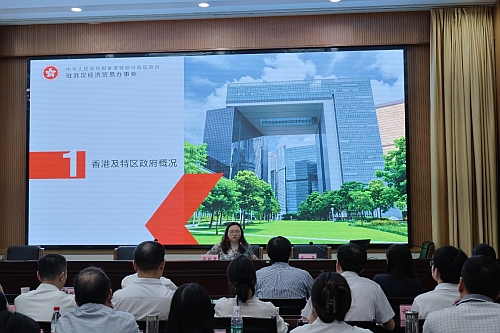 驻武汉办主任蔡敏君一行应邀出席于8月29日在黄冈市举办的「黄冈市对外工作能力提升培训班」,并就「香港——超级联系人,超级增值人」为主题进行专题授课,向培训班学员们介绍香港的基本情况和最新发展,并宣传和推广香港的投资和营商环境,讲好香港故事,深化鄂港合作,助力黄冈高质量发展。